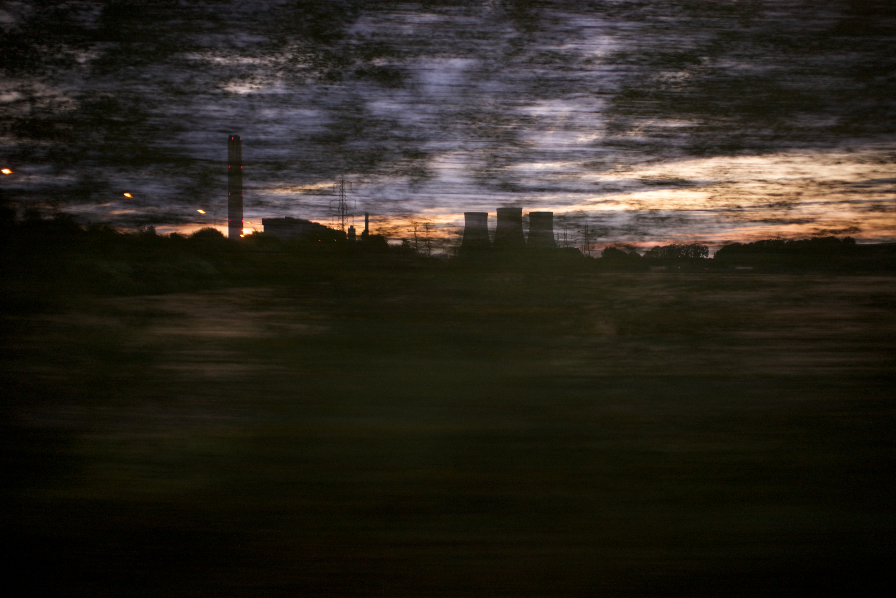 Didcot “cloud factory” now only three cooling towers. This picture taken from the train captured them through the trees as we rushed past.